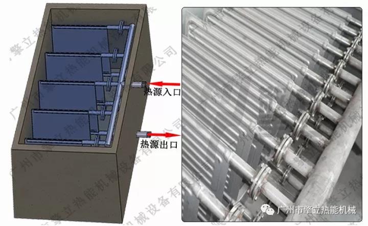 平板沉浸式換熱器,一款放于槽池內(nèi)的沉浸式板狀熱交換器,由兩塊特殊傳熱壁板合成,傳熱板之間形成流體運動通道,通過間壁式傳熱方式進行熱量交換,是液-液、液-汽體的熱交換的理想設(shè)備。它具有換熱效率高,熱損小,安裝清洗方便,耐腐蝕等特點,傳熱效率高達95%,可用于化學(xué)表面處理、涂裝工程、噴淋酸洗等領(lǐng)域。